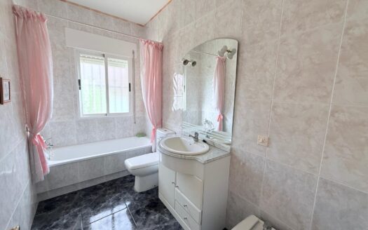 La casa cuenta con una superficie construida de 220 m², distribuidos en dos plantas de 110 m² cada una. En la planta principal encontramos un cómodo porche de acceso, un salón independiente con buena iluminación, una cocina funcional, tres dormitorios con armarios empotrados y dos baños completos, lo que aporta comodidad y practicidad en el día a día.
